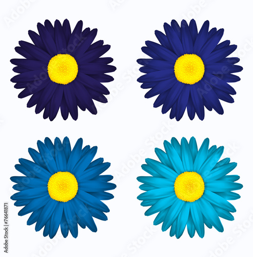 Set De Flores En Tonos Azules Margaritas De Colores Primavera