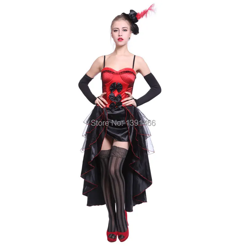 Red Can Can Fancy Dress Saloon Burlesque Show Girl Costume Moulin