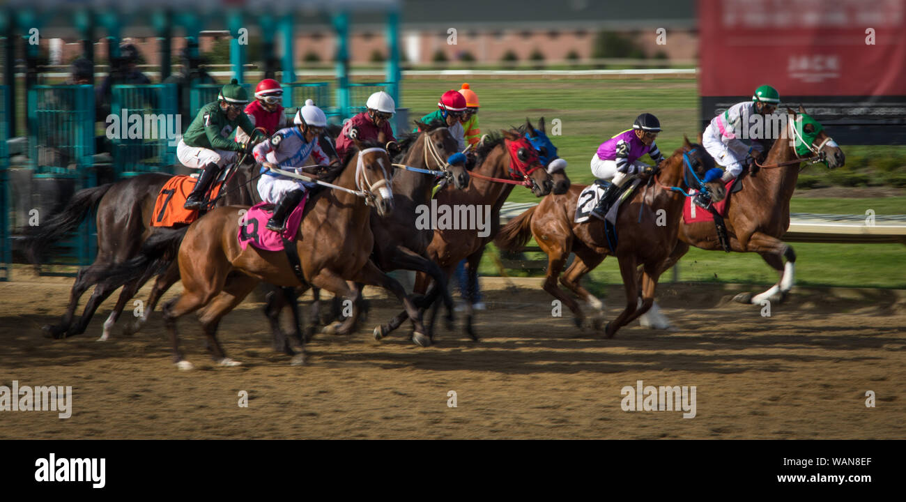 Caballos De Carrera Corriendo De La Puerta De Salida Fotografia De Stock Alamy