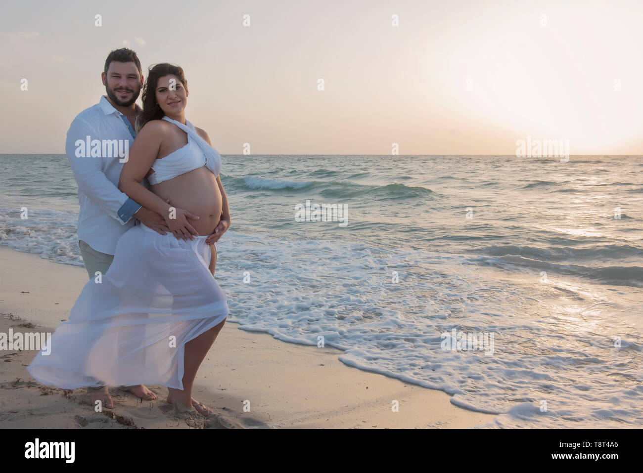 Pareja Embarazada En La Playa Fotografia De Stock Alamy
