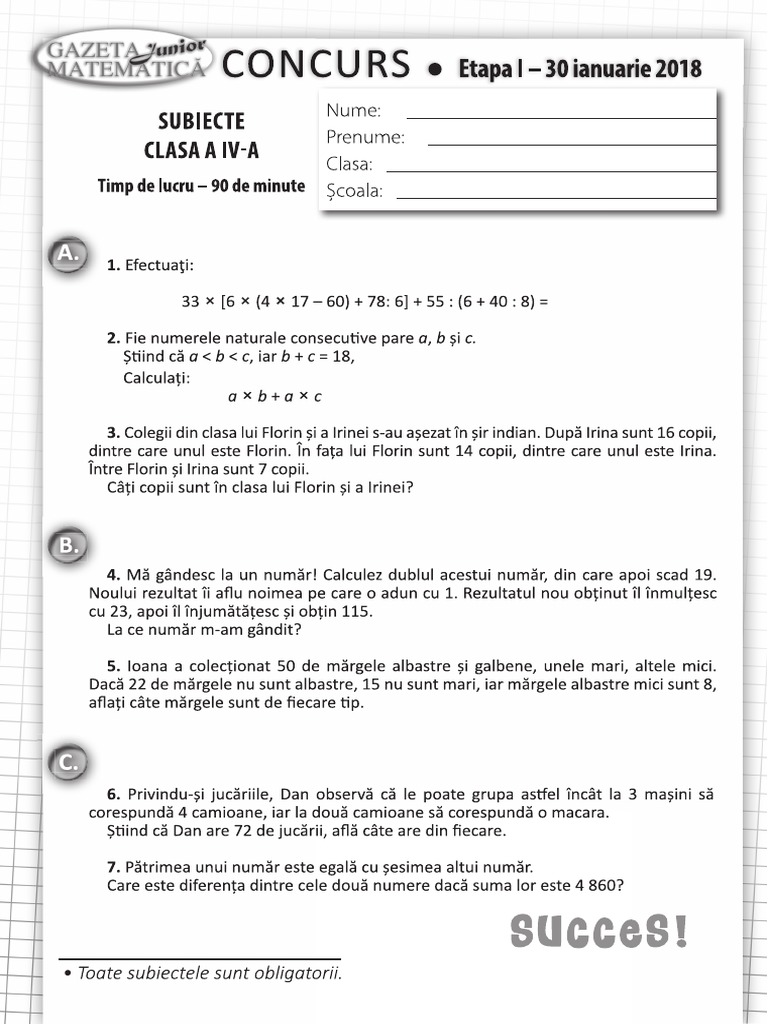 Gazeta Matematica Junior Clasele 1 4 Pdf