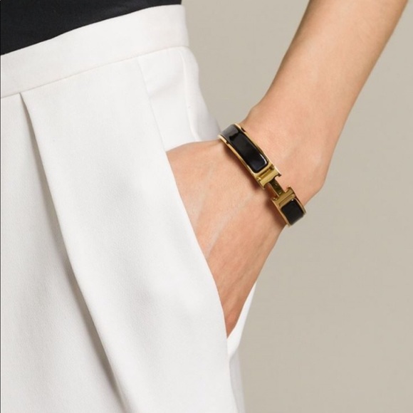Hermes Clic H Black Enamel Gold Plated Narrow Bracelet Pm Hermes Tlc