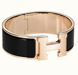 Hermes Clic H Bracelet Black And Rose Gold Metal129912 Hewi