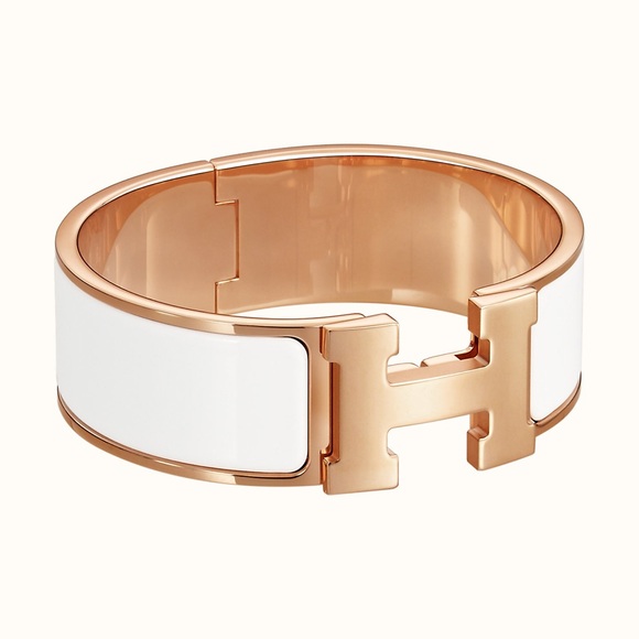 New Hermes White Rose Gold Hardware Clic Clac H Wide Enamel