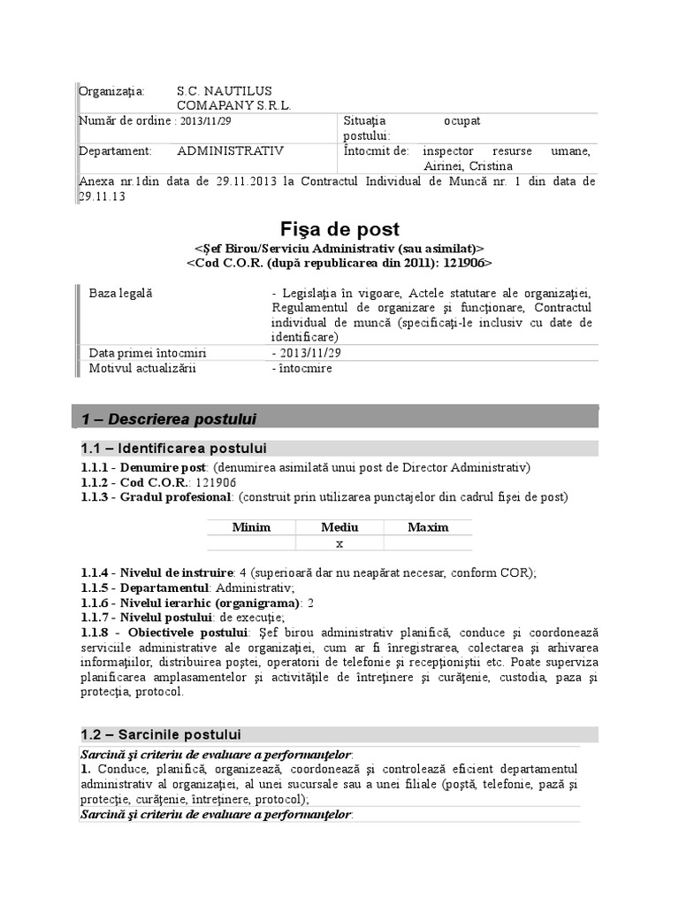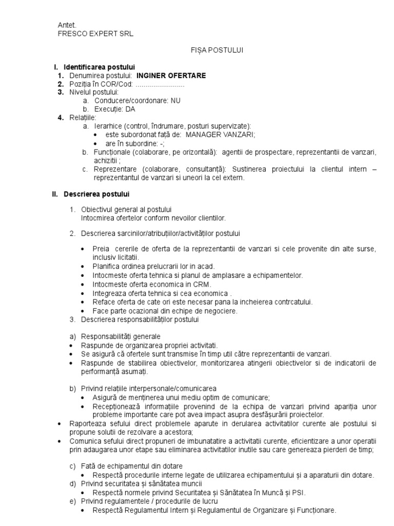 Fisa De Post Pentru Inginer Instalatii Pentru Constructii