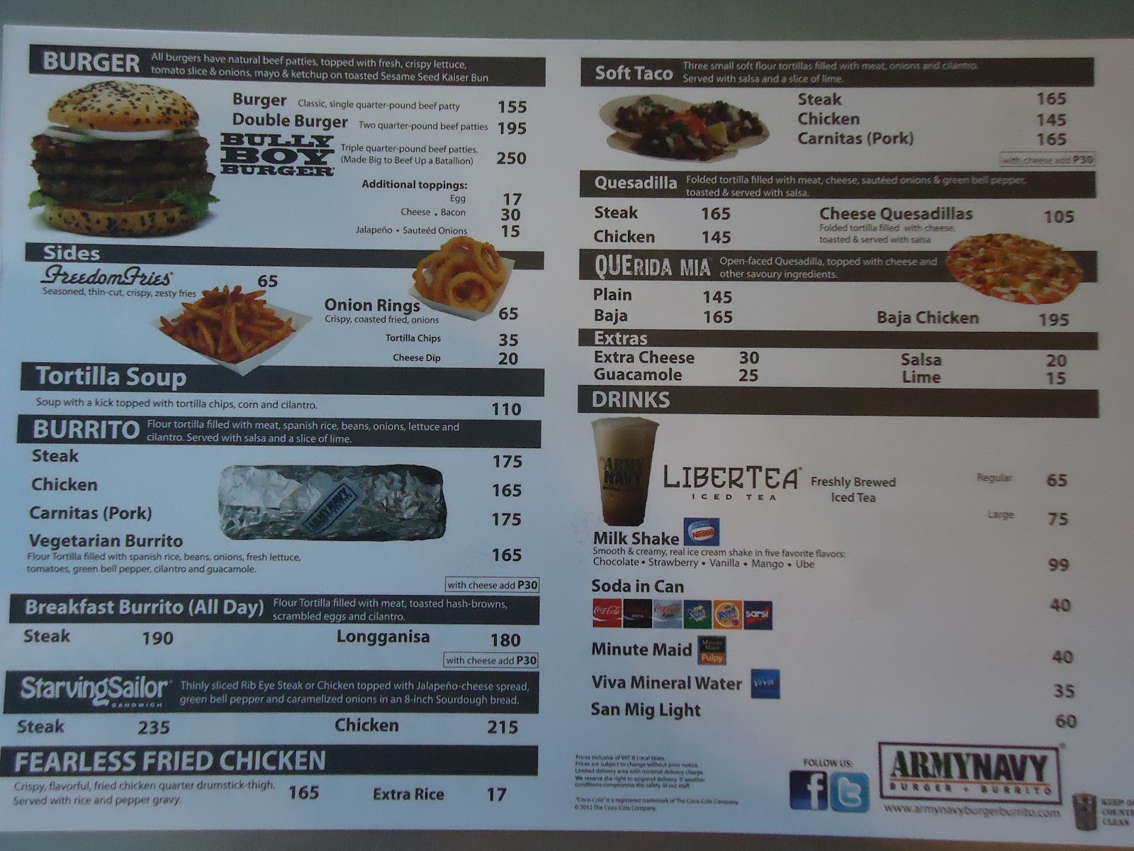 Armynavy Burger Burrito Philippines Posts Makati Menu