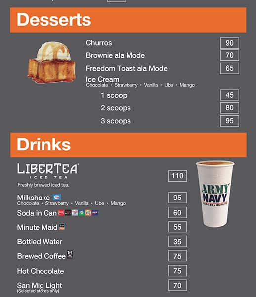 Army Navy Menu Menu For Army Navy San Juan Cainta