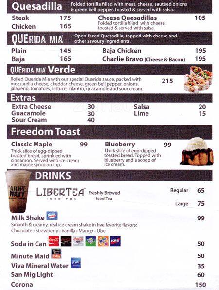 Army Navy Menu Menu For Army Navy San Juan Cainta
