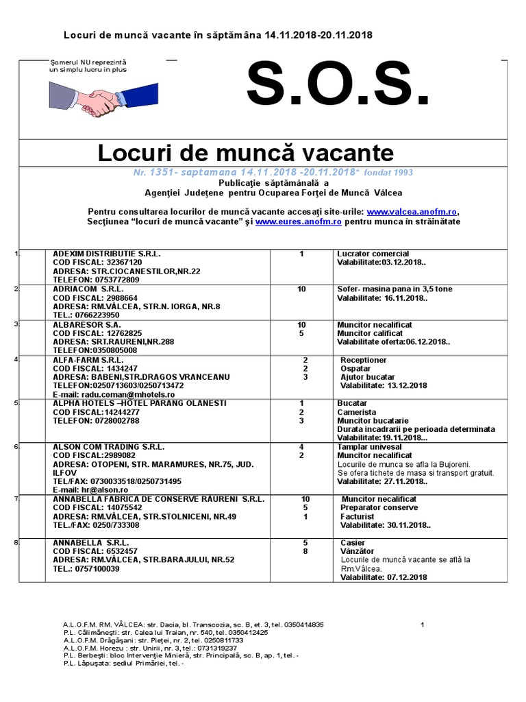 Locuri De Munca Vacante Azi In Valcea