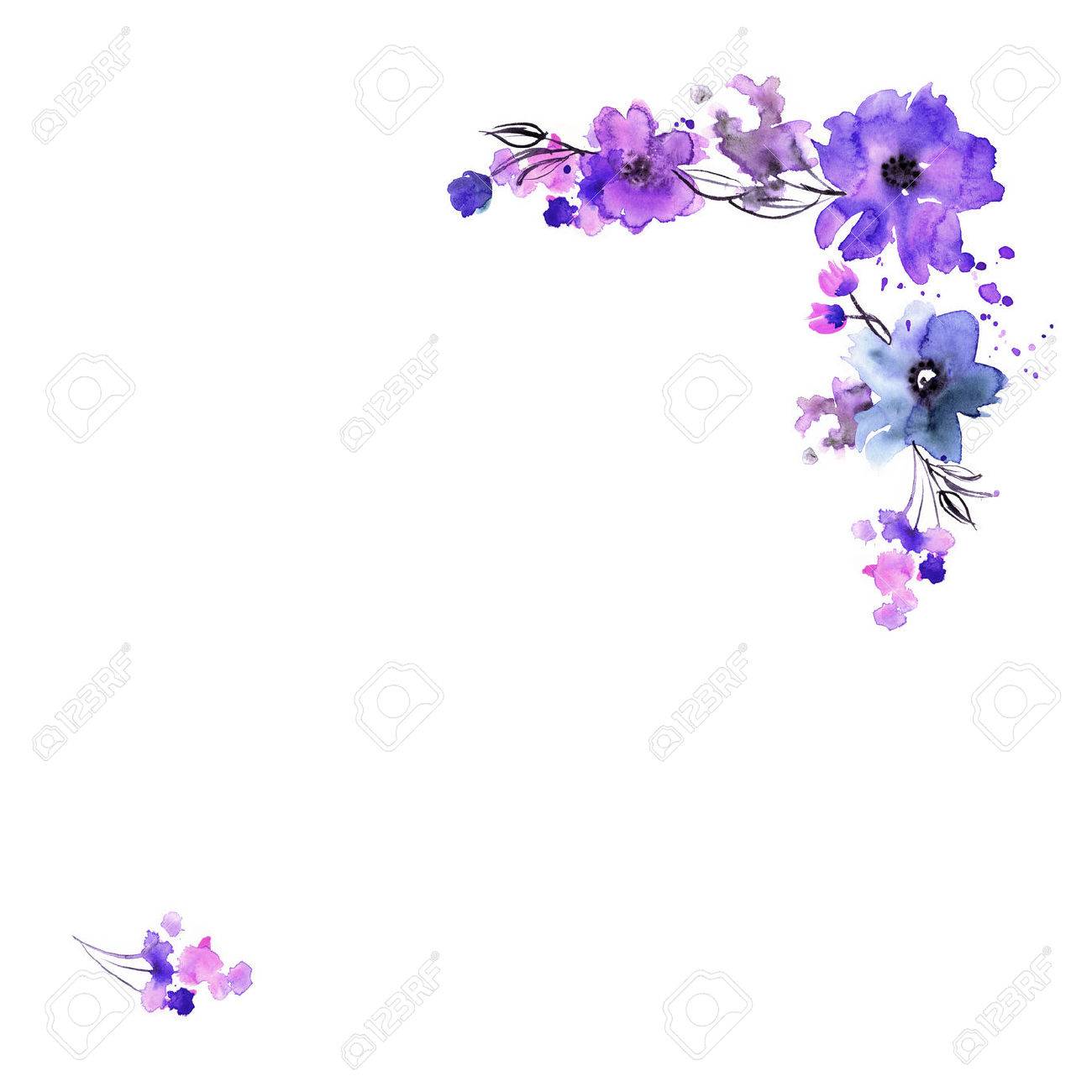 Ilustracion De Flores Moradas Blancas Y Verdes Marco De Flores