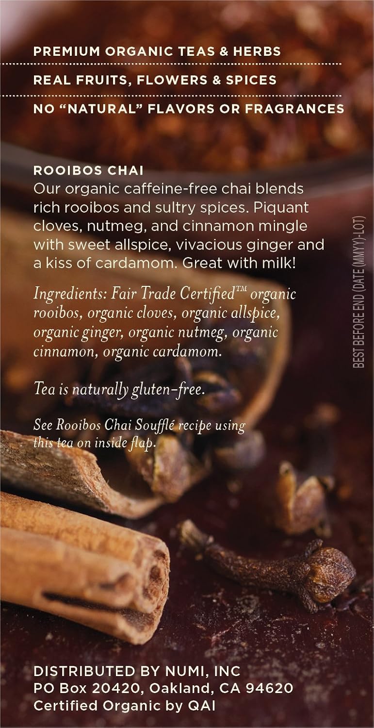 Numi Tea Organic Herbal Teasan Rooibos Chai Caffeine Free 18