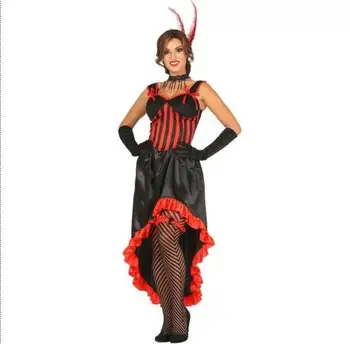 Red Can Can Fancy Dress Saloon Burlesque Show Girl Costume Moulin