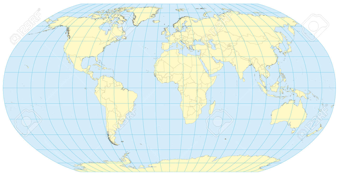 World Map In Robinson Projection With Meridians And Parallels Grid