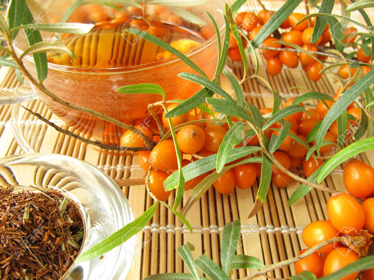 Rooibos Tea With Fruits Of Sea Buckthorn Stock Photo Picture And