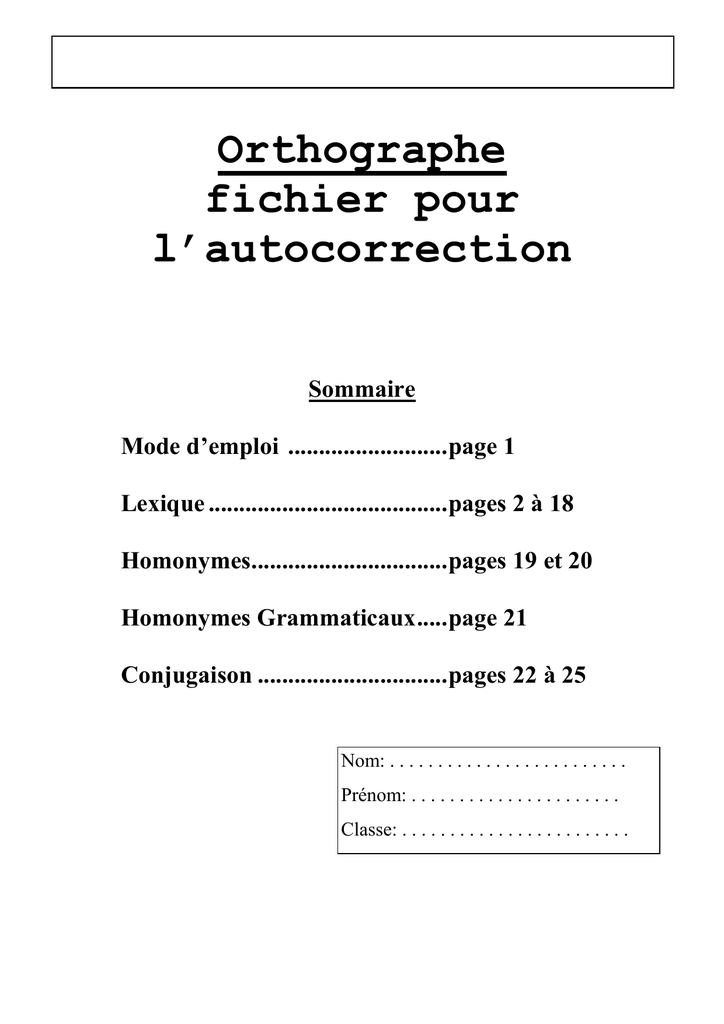 Orthographe Fichier Pour L Autocorrection Manualzz