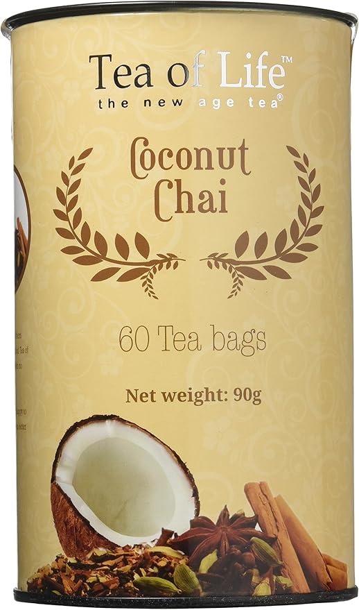 Tea Of Life Chai Tea Jumbo Cannister 60 Teabags Coconut Chai