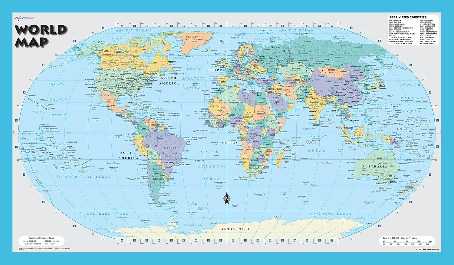 World Map Robinson Projection No Country Borders