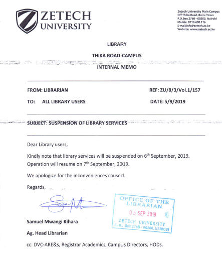 Zetech Uni Library On Twitter Hello This Is To Inform You That