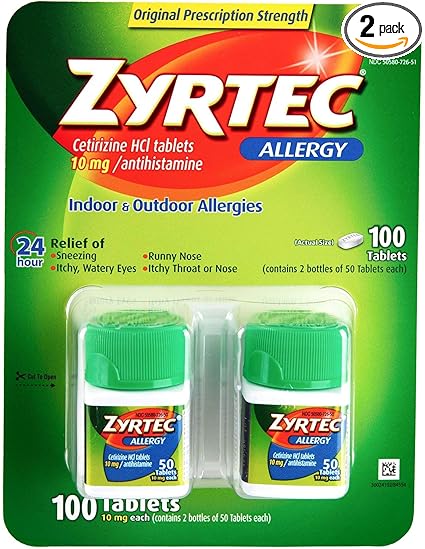 Amazon Com Zyrtec Prescription Strength Allergy Medicine Tablets 10 Mg 50 Count Pack Of 2 Health Personal Care